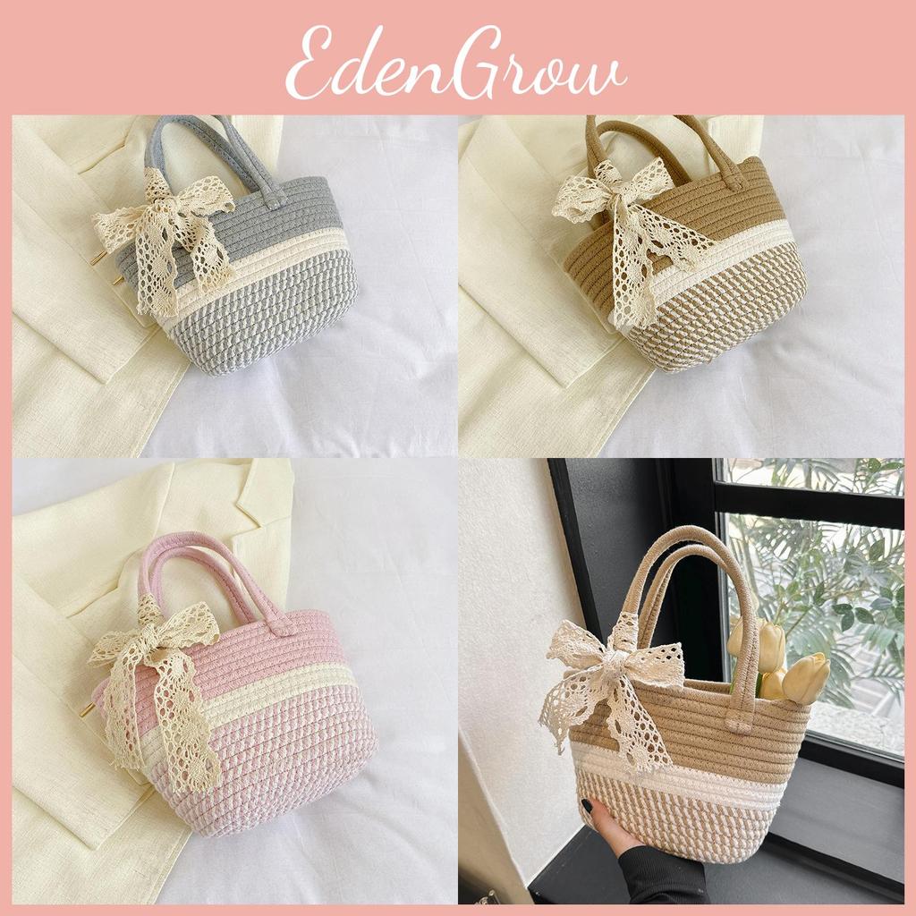 Stylish Woven Handheld Plaid Bucket Bag Large Capacity Trendy Girls Purse In Gray Khaki Pink