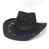 Spring and summer new hollowed out denim hat, hand woven straw hat, breathable and cool, upturned edge jazz top hat