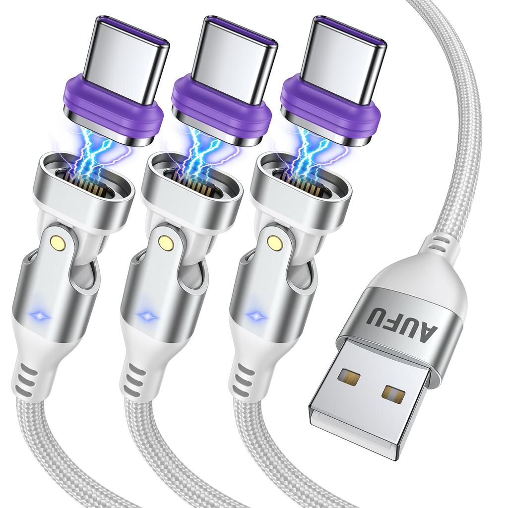 AUFU Magnetic USB C Charging Type C Rotatable 2M 3A Fast Data Magnetic Connection Compatible with Android and Other Set of 3 Cable, 18W, 16-pin Cable,