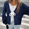 Damenbekleidung Herbst und Winter Strickjacke zum Schnüren Pullover Einfarbig Locker Langärmeliges Oberteil Jacke