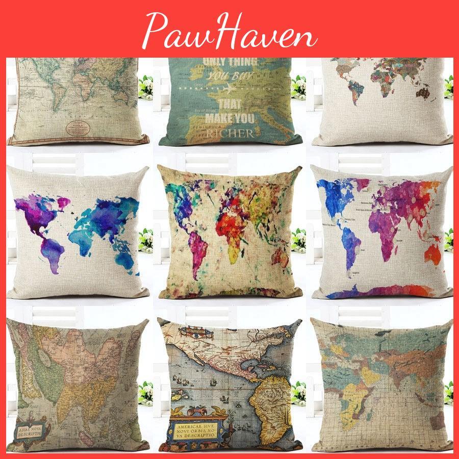 Hochwertiger Heimweltkarten-Druck Kissenbezug für elegante Sofadekoration
