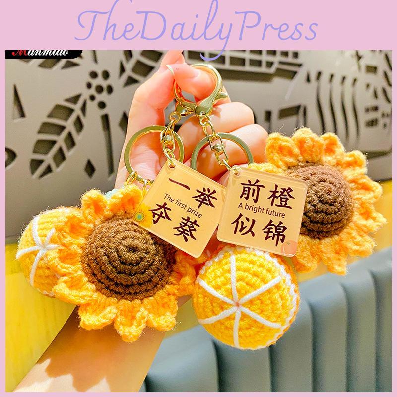 Kreativer Plüsch Häkel Sonnenblumen Schlüsselanhänger Entzückender Taschenanhänger Geschenk für Prüfungen