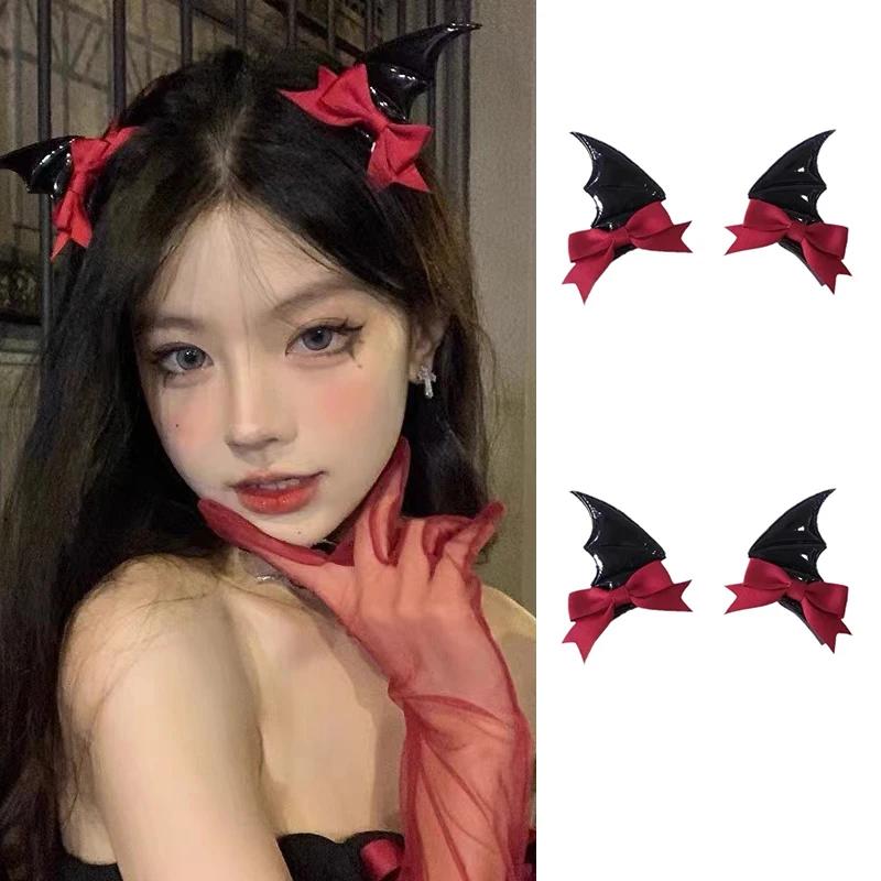 2pcs/4 Pcs Halloween Bat Wings Bow Hair Clips for Women Girls Cosplay Hair Barrettes Hairpins Gothic Festival Hair Accessories F