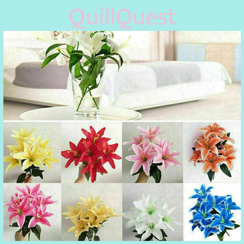 Üppiger 45cm 10 Köpfe Künstliche Sternlilien Seidenblumenstrauß für Lebendige Dekoration