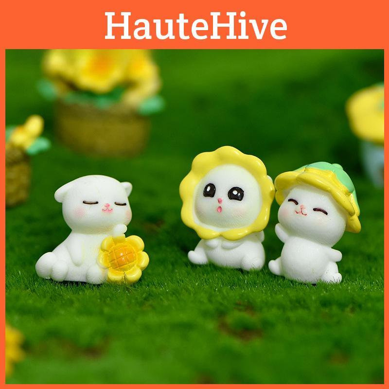 Entzückende Harz Sonnenblumen Katze Miniatur Charmante Cartoon Gartendekoration Tierfigur