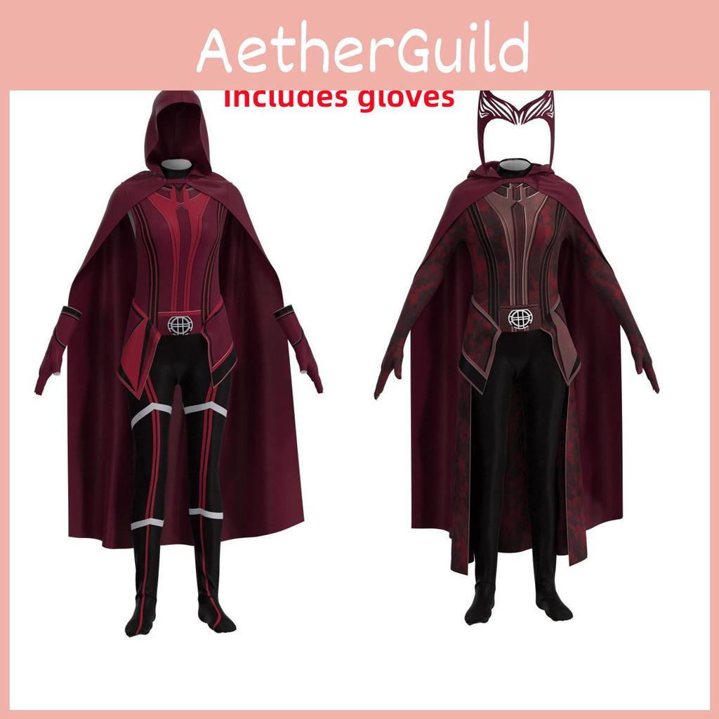 Wunderbares Scarlet Witch Rollenspielkostüm für erwachsene Kinder Jumpsuit Kopfschmuck und Umhang enthalten