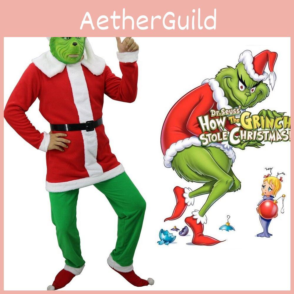 Festliches Wie der Grinch Weihnachten stahl Erwachsenenkostüm Anzug für Feiertags-Cosplay-Spaß