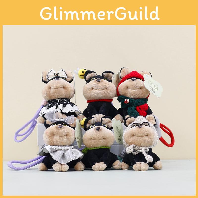 Charming Short Plush Dog Keychain With Colorful Hat And Bow For Fun Decoration