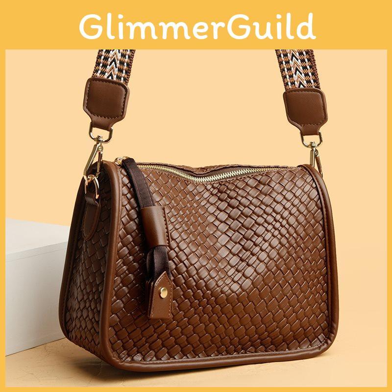 Stylish Woven Leather Shoulder Bag For Women With Wide Strap And Large Capacity
