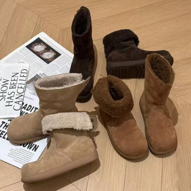 Damenlederschuhe Winter kleiner Heizkörper 2025 neu Mango-Kopf koreanische Version Samt zwei Tragearten High-Top Baumwollstiefel Schneestiefel
