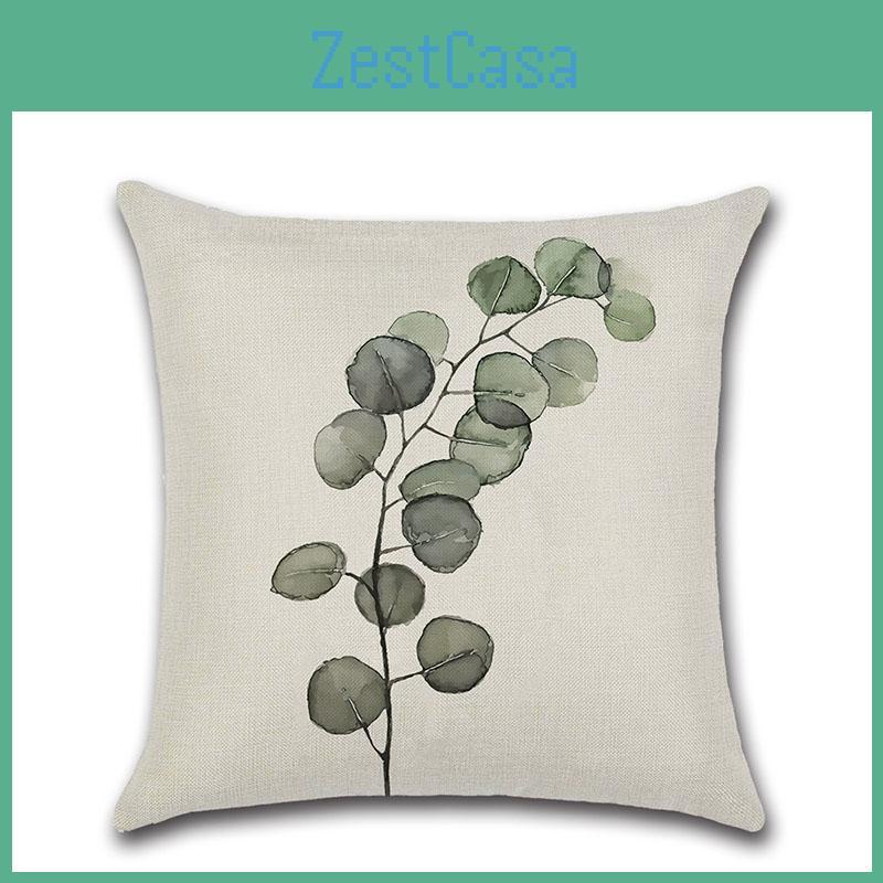 Elegant Green Leaves Patterned Linen Pillow Case Decorative Cushion Cover 18"x18