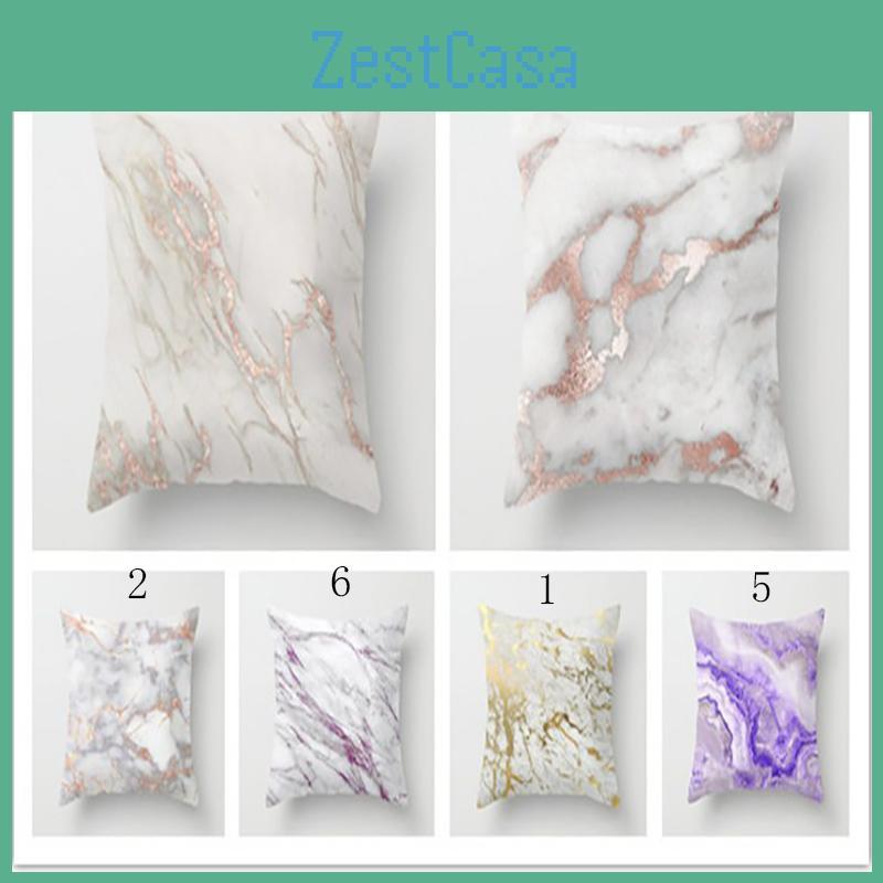 Elegant Marble Pattern Square Cushion Cover Made From Soft Peach Skin Fabric 18 Inches