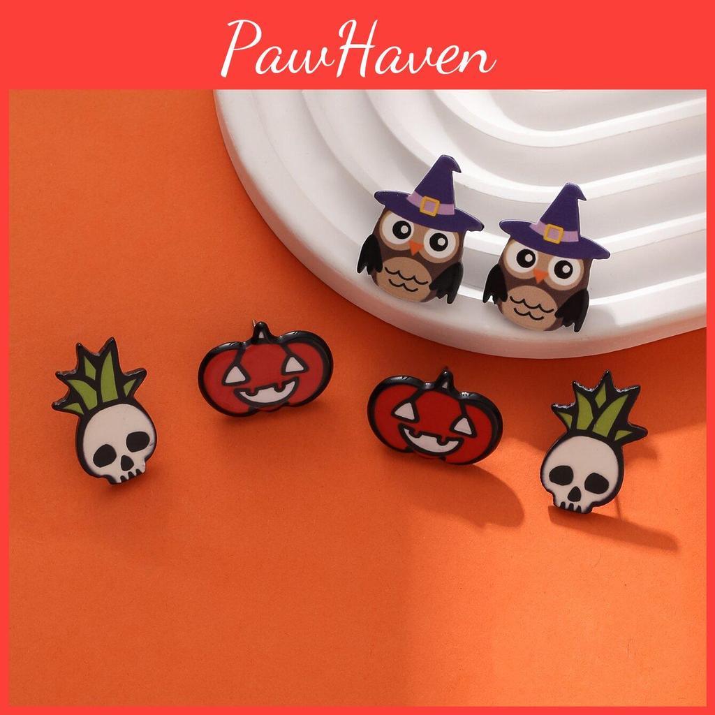 Einzigartige Halloween Acryl Ohrringe mit Cartoon-Totenköpfen und Kürbissen