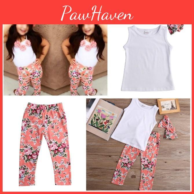 Entzückendes Kleinkind Mädchen Kinder Floral Tops Hosen Hosen Stirnband 3-teiliges Outfit Set Kleidung