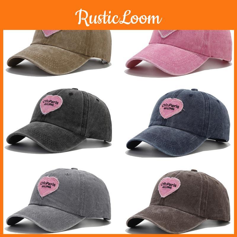 Versatile Cotton Baseball Cap With Embroidered Pink Heart And Round Crown