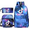 3pcsset Tok Tik Blue Galaxy Backpack Schoolbag Shoulderbag Pencilbag Kids Women