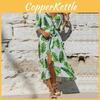Elegant Women Long Sleeve Loose Split Maxi V-neck Button Shirt Dress Sundress