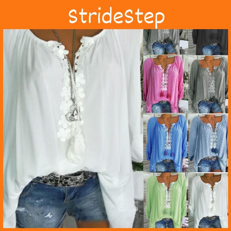 Elegant Plus Size Women Boho Long Sleeve Blouse Baggy Tops With V Neck Design