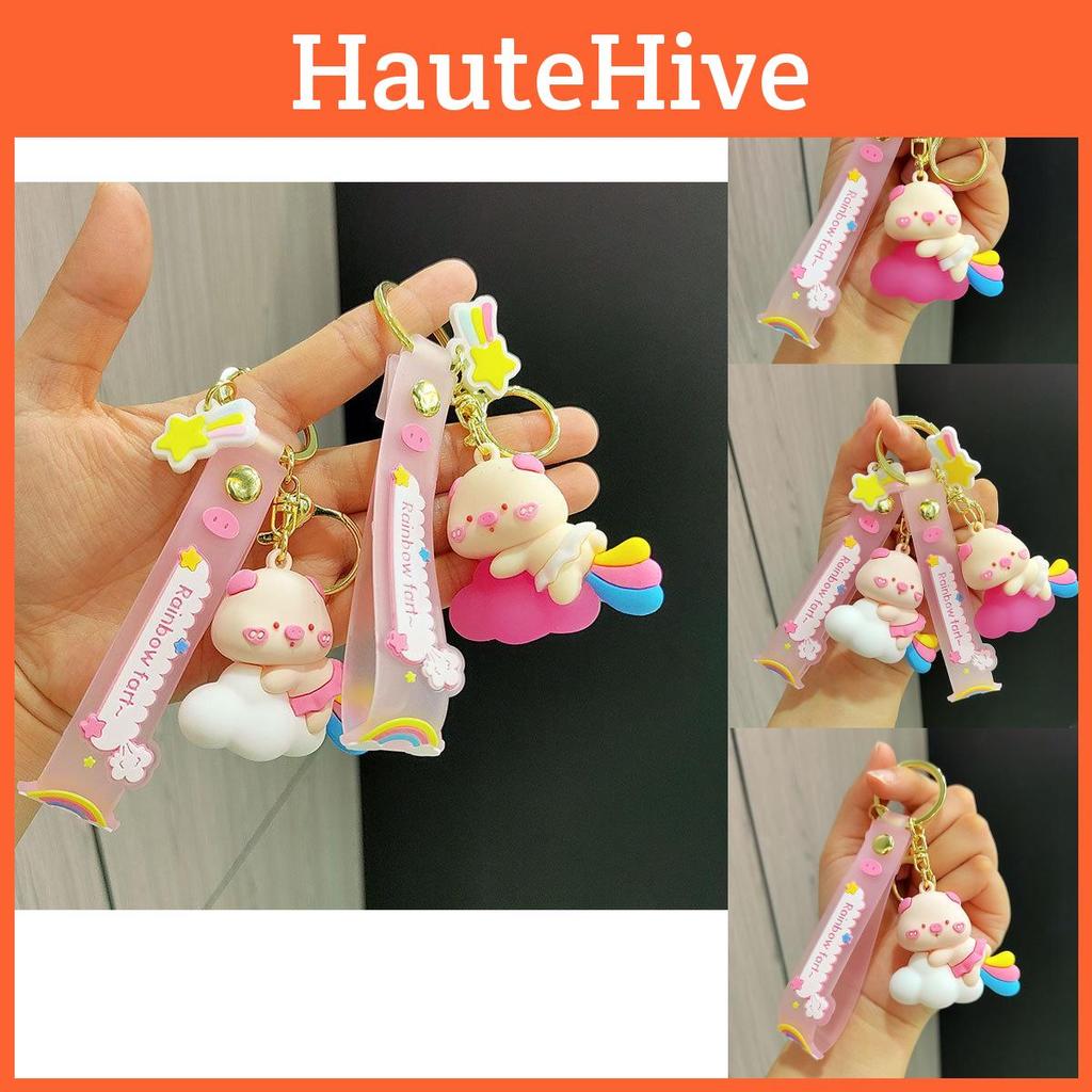 Creative Silicone Rainbow Pig Keychain Cute Cartoon Bag Accessory Perfect Gift Idea