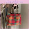 Chic Soft-sided Vertical Women's Shoulder Bag With Trendy Plaid Canvas For Everyday Commuting