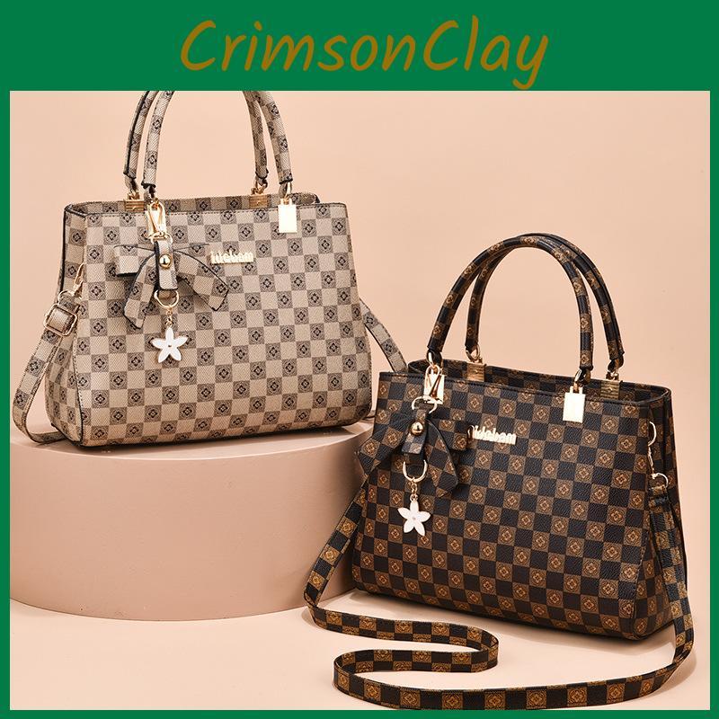 Butterfly Bow Handbag 2023 New Retro Plaid Middle-aged Women's Bag Color-blocking Shoulder Bag Charming