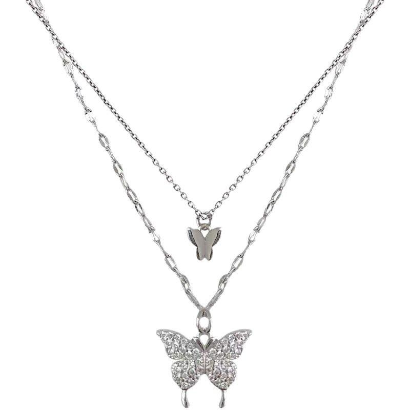 Farbe Glänzende Schmetterling Halskette Weibliche Exquisite Doppel Schicht Anhänger Schlüsselbein Kette Halskette Hochzeit Schmuck Geschenke