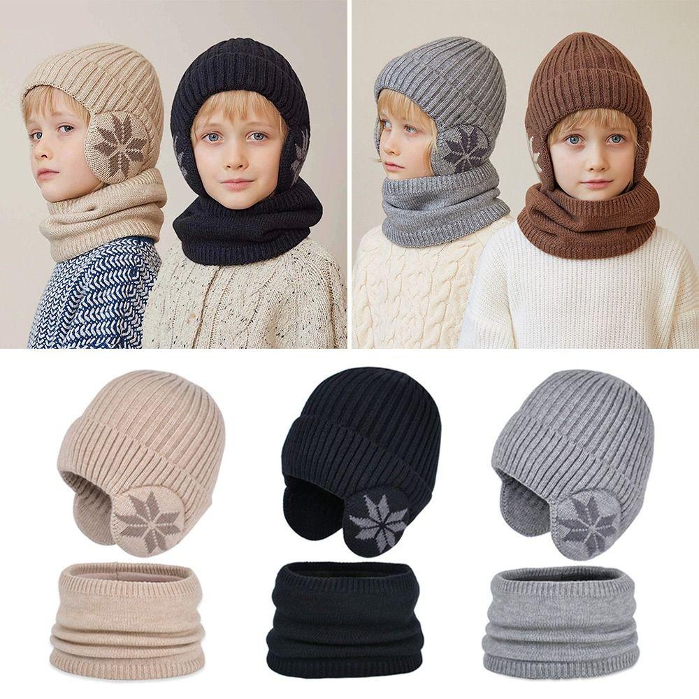 2Pcs/Set Fleece Children Hat Scarf Set Warm Beanie Hat Scarf Fashion Knitted Scarf Cap Boys Girls