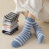 Women's Thick Coral Fleece Socks – Striped, Non-Shedding, Warm for Autumn & Winter