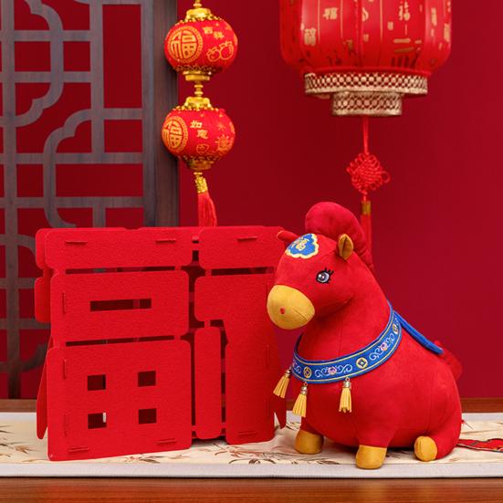 Yousheng 2026 Chinesisches Neujahr Tierkreis Pferd Plüschtier Weiches Stoffpferd Rot Glücksbringer Puppe für Frühlingsfest Geschenk Segen Souvenir Zuhause Büro