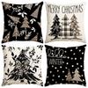 1/4pcs Christmas Black Christmas Tree Pattern Printed Pillow Cover, Decorative Home Sofa, Suitable for Living Room and Room