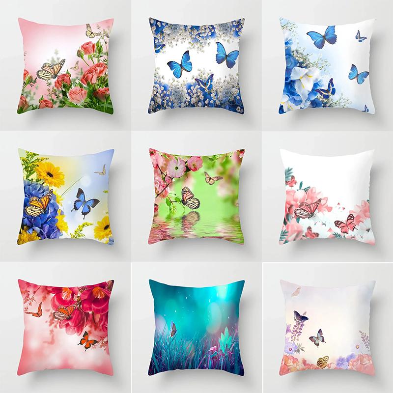 Butterfly Flower Pattern Decorative Pillowcase Car Sofa Square Cushion Pillowcase