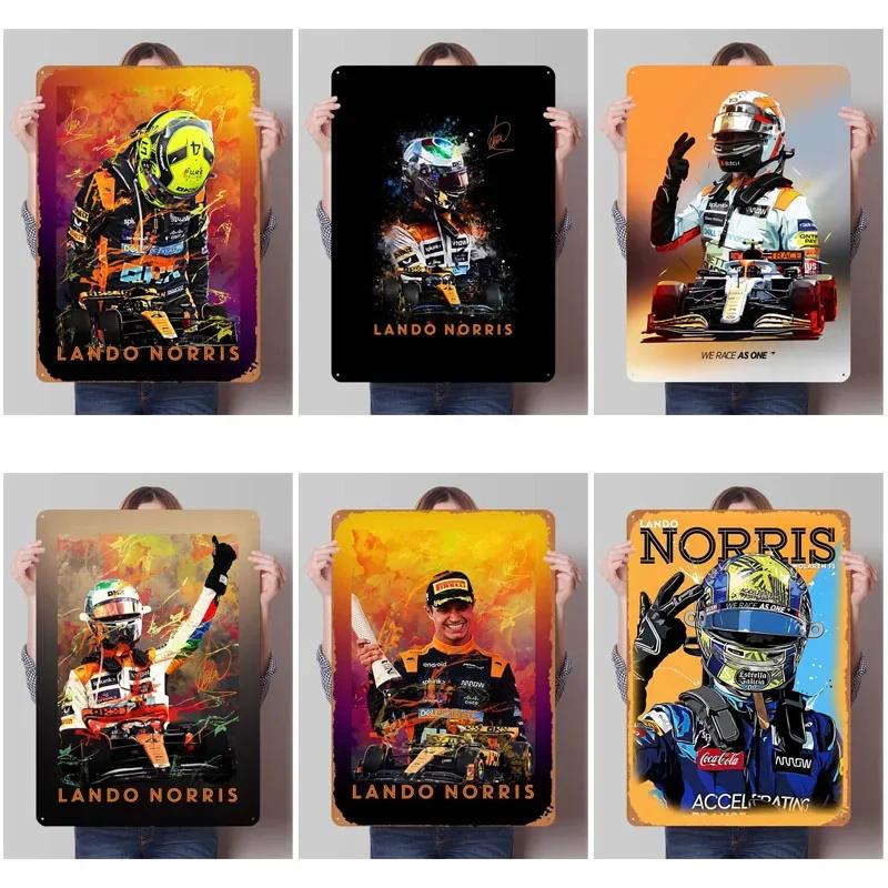 Lando Norris Metallschild Rennposter Dekorative Metallplatten Retro Blechschild für Wandkunst Dekoration Gamer Zimmer Dekoration