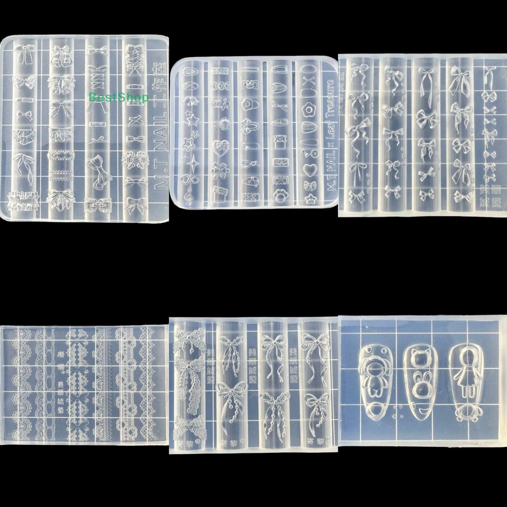 3D Silicone Nail Mold Lace Bow Heart Carving Template DIY Nail Art Decor Transparent Manicure Mold