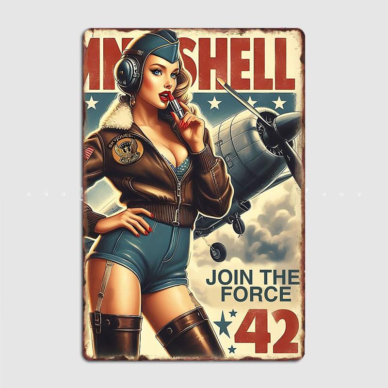 Klassisches Sky Queen Vintage Poster WW2 Retro Poster Metallschild Garage Club Innenraum Wanddeko Benutzerdefinertes Blechschild Heimdeko