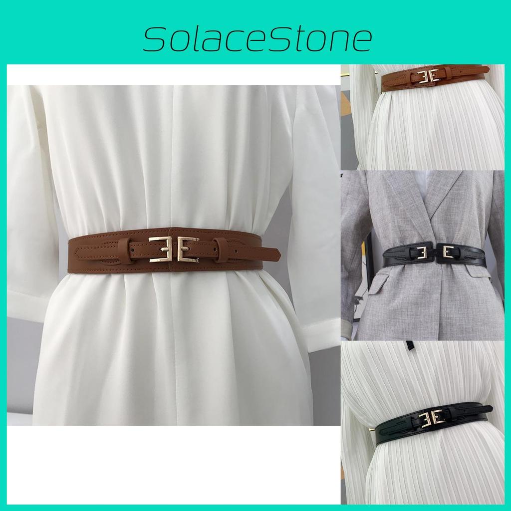 Stylish Women's Elastic Waist Belt With Double Buckles For Dresses And Coats In Black And Camel