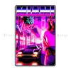 Nacht in Miami: Vaporwave-Vibes Oldtimer in Vice City Metalldekoration Clubparty Malerei Dekor Kino Blechschild Poster