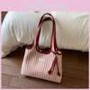 Trendy Korean Style Striped Tote Bag For Everyday Use Soft Canvas Shoulder Bag