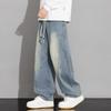 Frühling Herbst Elastische Taille Locker Lässig Weites Bein Denimhose Männlich Vintage All-Match Gerade Jeans Hose Herren