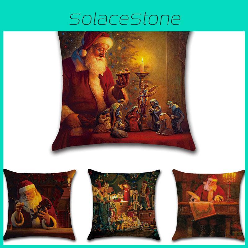Elegantes Weihnachtskissen aus Leinen mit Weihnachtsmann für gemütliche Heimdekoration