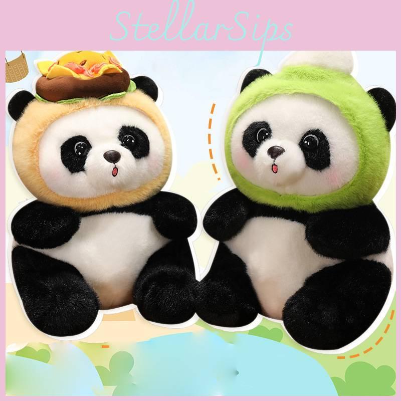 Entzückendes Panda-Plüschtier mit Eis und Hamburger-Lieferoutfit Perfekt für Kindergeburtstagsgeschenke
