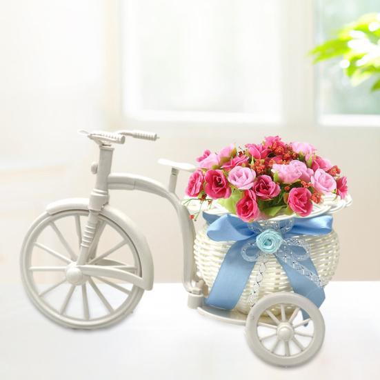 Yousheng Blumenständer Rattan Korb Dreirad Design Blumenkorb Dekorativer Gewebter Aufbewahrungskorb für Zuhause Hochzeit Tischdekoration