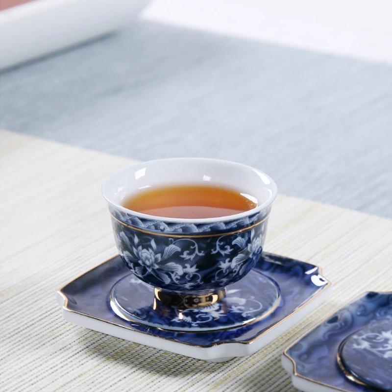 Retro Blau-Weiß Porzellan Teetasse Chinesisch Jingdezhen Kleine Teeschale Goldrand Keramik Teetasse Kaffeetasse Heimisches Trinkgeschirr