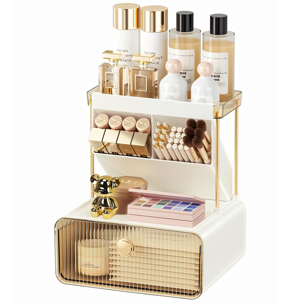Yazi Kosmetikaufbewahrung Groß Make-up-Aufbewahrung Pinsel Badezimmeraufbewahrung Kosmetik Hautpflege Schreibtisch-Organizer mit Süßem Geschenk für Frauen Box, 4-stöckig, Kapazität,