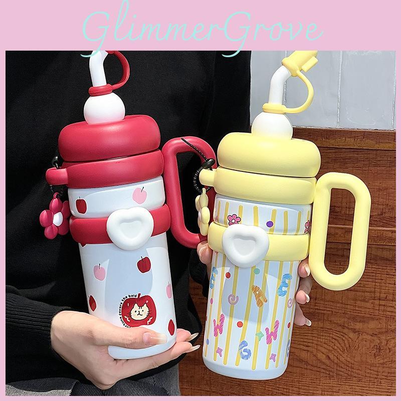 Becher mit großer Kapazität, vakuumisoliert, mit Strohhalm für Büro und Outdoor-Gebrauch