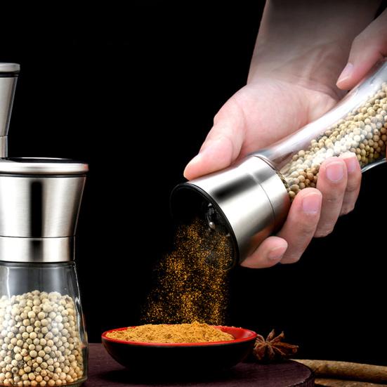 Pfeffermühle Edelstahl Einstellbar Manuelle Gewürzmühle Schwarzer Pfeffer Meersalz Kreuzkümmel Mühle Transparenter Körper Küchenwerkzeug