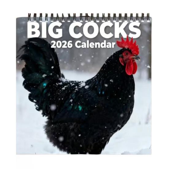 2026 Lustiger Hahn Kalender Große Hahn Wortspiele Monatlicher Wandkalender mit Humorvollen Geflügelfotos Dickes Papier Drahtbindung Büro Streiche Geschenk