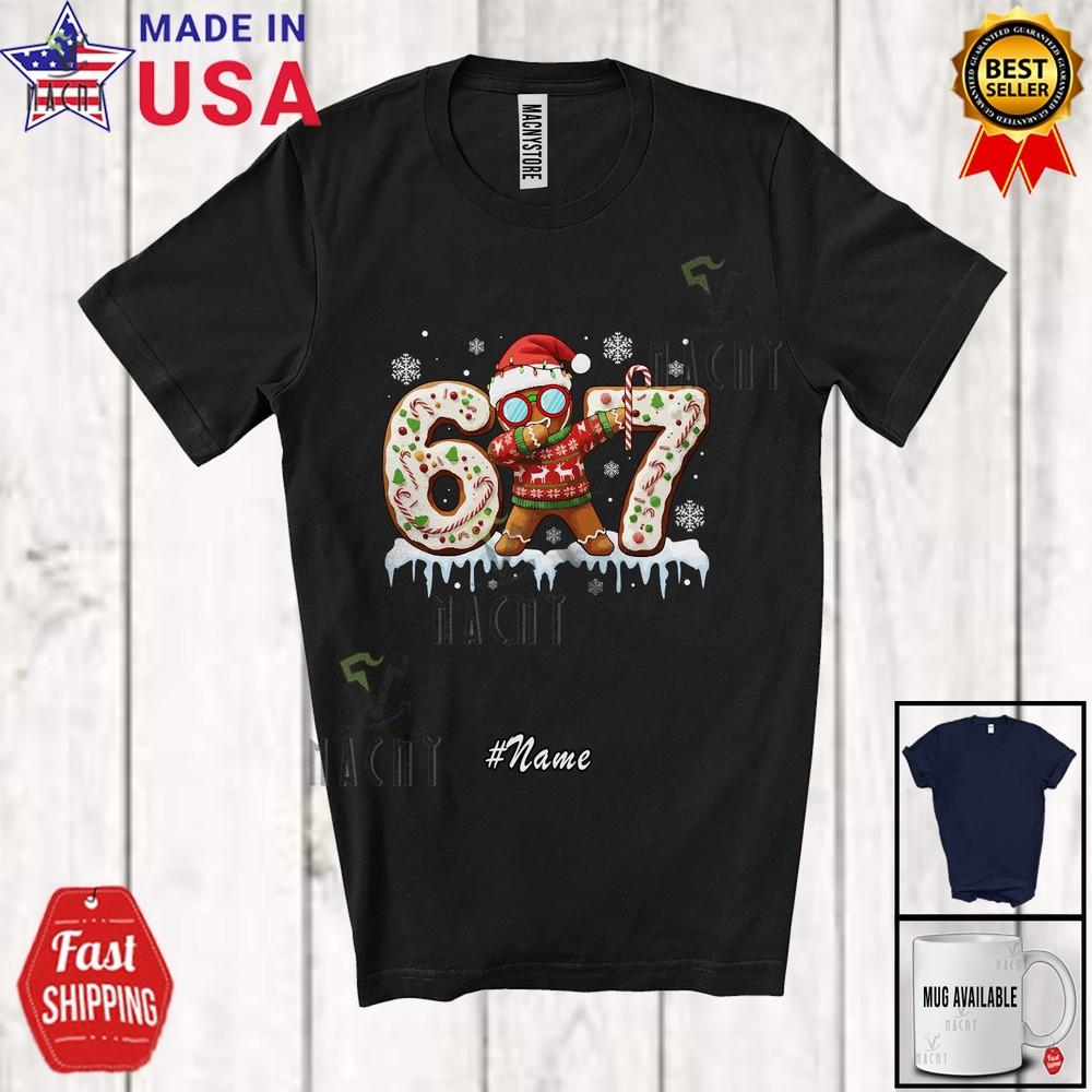 Custom Name Dabbing Gingerbread Candy Canes Joyful Christmas Six Seven 67 Shirt