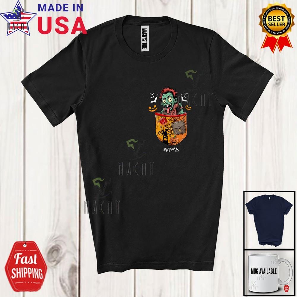 Benutzerdefinierter Name Zombie in der Tasche Gruseliges Halloween Zombie Kürbis Familie T-Shirt