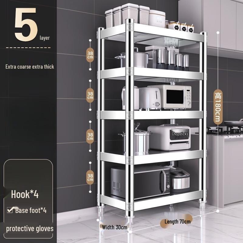 Cream Style 4-Tier Stainless Steel Kitchen Storage Rack, 70x30x180cm
