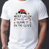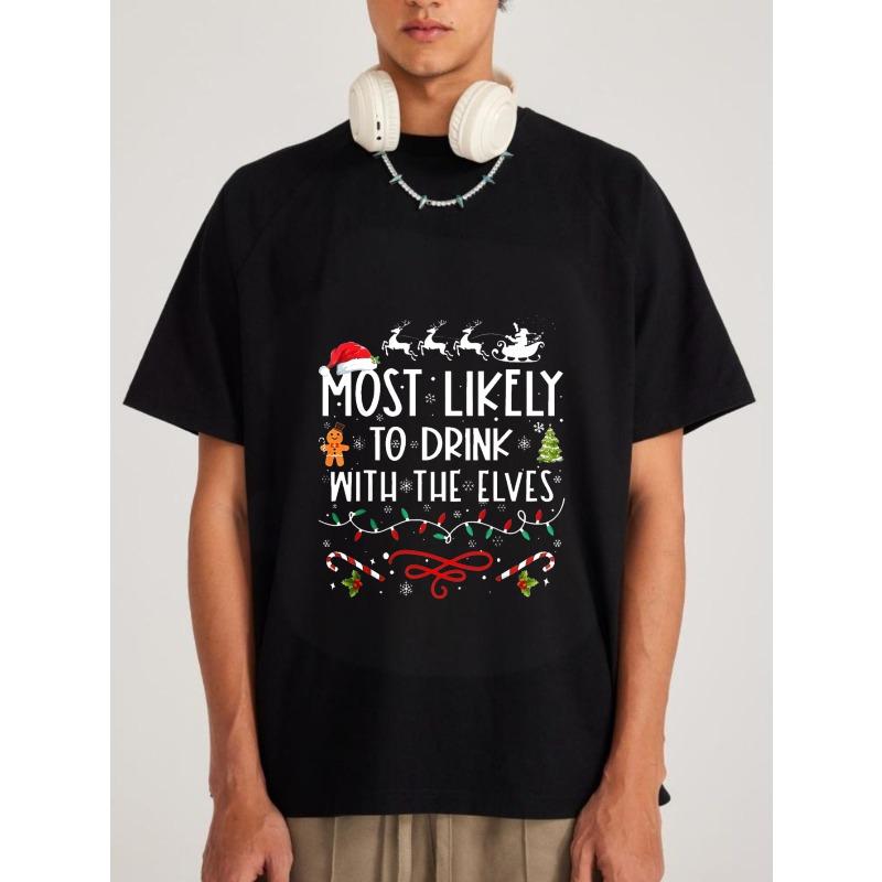 Weißes Weihnachts-T-Shirt Trinkt am wahrscheinlichsten mit den Elfen Feiertagsdesign für Weihnachtsfeier